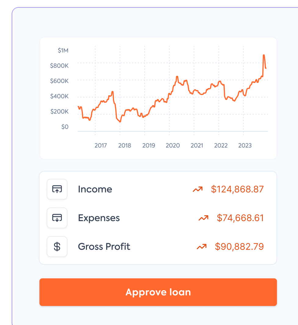Our Lending solution is built on top of the latest accounting, commerce, and banking data, providing you with the most important data points you need to get a full picture of SMBSMB The primary customer segment that Codat helps businesses serve, typically companies with annual revenues under $500 million. creditworthiness and make a comprehensive assessment of your customers.